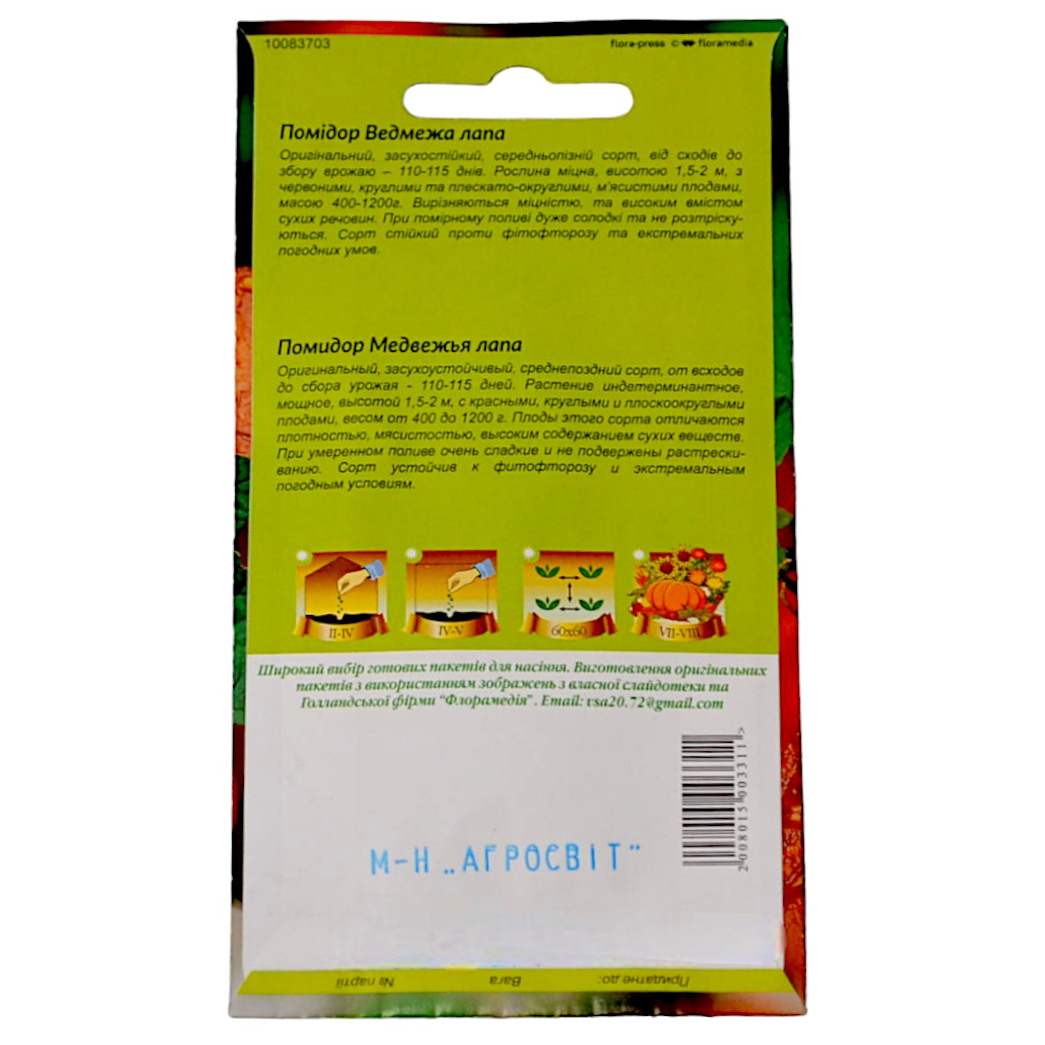 Головна Насіння Томат Ведмежа лапа (медвежья) 0.2г (678)